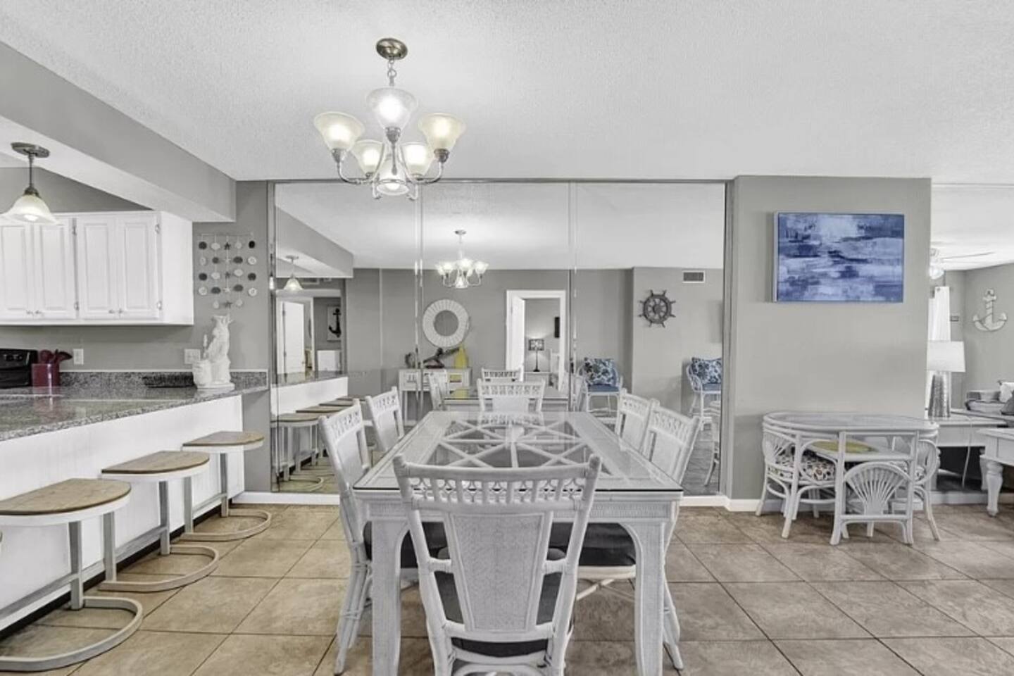 Located on the quieter side of PCB (less traffic with an abundance of activities). Our previous Guest love the convenience of being able to go downstairs and walk out to the pool and beach(No streets to cross!). The best part about this unit is opening the sliding glass doors and walking out to the balcony in the morning with a cup of coffee or tea to watch the dolphins. It will make you stop to take in the beauty of it all each time. We love this place and have worked hard so our guests will love it too. You'll notice immediately that we have supplied some of the must-haves for the condo so you wouldn't have to purchase or bring as much from home. Primary guest must be 23 years or older(please inquire if not). This unit has 3 bedrooms and 2 full baths. Master has a king, 2nd bedroom has a queen, 3rd bedroom has 2 full beds. This is great for large families with small kids. The couch in the living room also has a pull-out bed if needed.